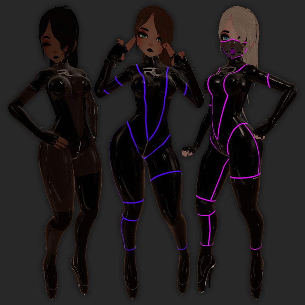 3.0 VRChat avatar by Yerite. RD Ltd presents the perfect outfit for people who want to show skin but not actually have any of it out in the open! Now you can show off your tattoos to everyone without ever feeling that awful cold breeze on your skin! Our state of the art latex suit can also go fully opaque if that suits your fancy more! Our ballet heels also provide the upmost comfort while also looking shockingly unique!